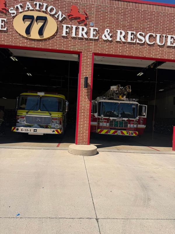 | The Ladder truck is covering the Red Lion area while crews are working on a structure fire. |